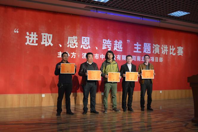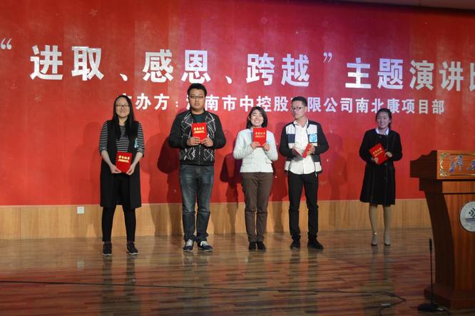 2016年3月26號(hào)下午一點(diǎn),由濟(jì)南市中控股有限公司主辦的“感恩、進(jìn)取、跨越”演講比賽在濟(jì)南大學(xué)第二學(xué)術(shù)報(bào)告廳舉行,濟(jì)南市中控股有限公司副總經(jīng)理孫澤寶、李毅德及各參建單位的分管領(lǐng)導(dǎo)一同參觀了此次活動(dòng)。經(jīng)過四個(gè)小時(shí)的激烈角逐,我公司代表孫盛楠、劉鳳磊、孫曉紅榮獲個(gè)人一等獎(jiǎng),不僅為個(gè)人贏得了榮譽(yù),也為公司增光添彩。