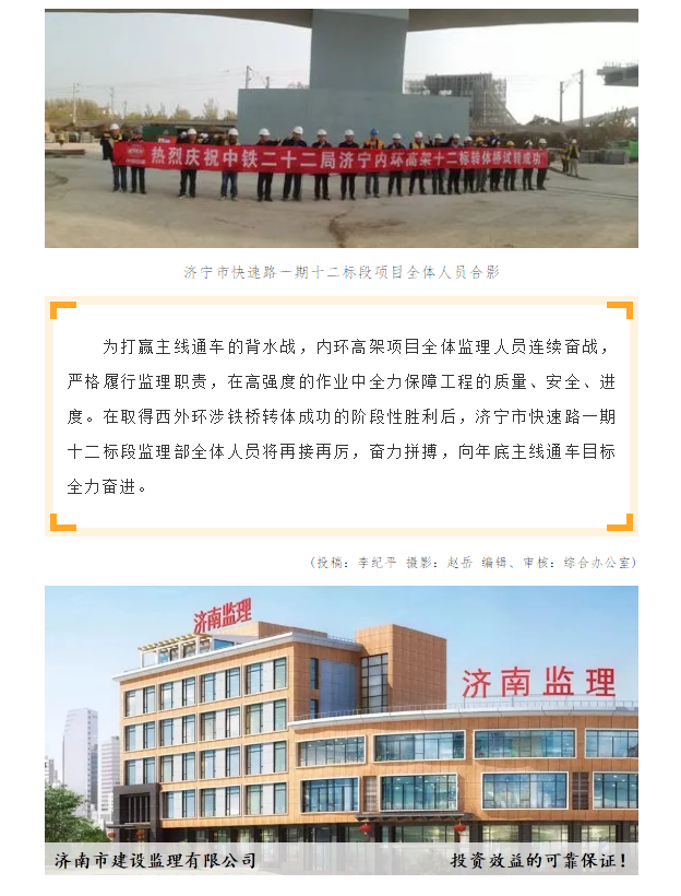 濟寧市內(nèi)環(huán)高架項目西外環(huán)涉鐵轉(zhuǎn)體橋成功轉(zhuǎn)體