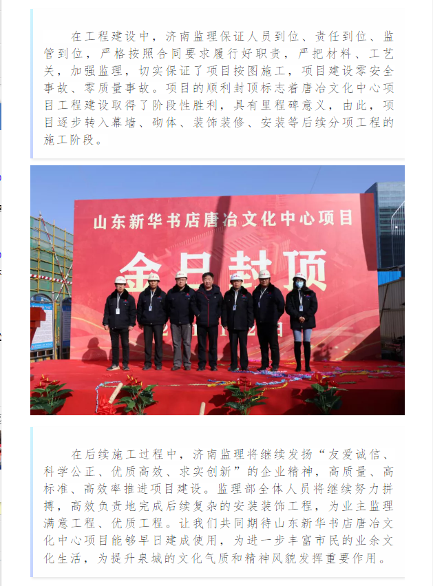 我公司監(jiān)理的山東新華書店唐冶文化中心項(xiàng)目順利封頂