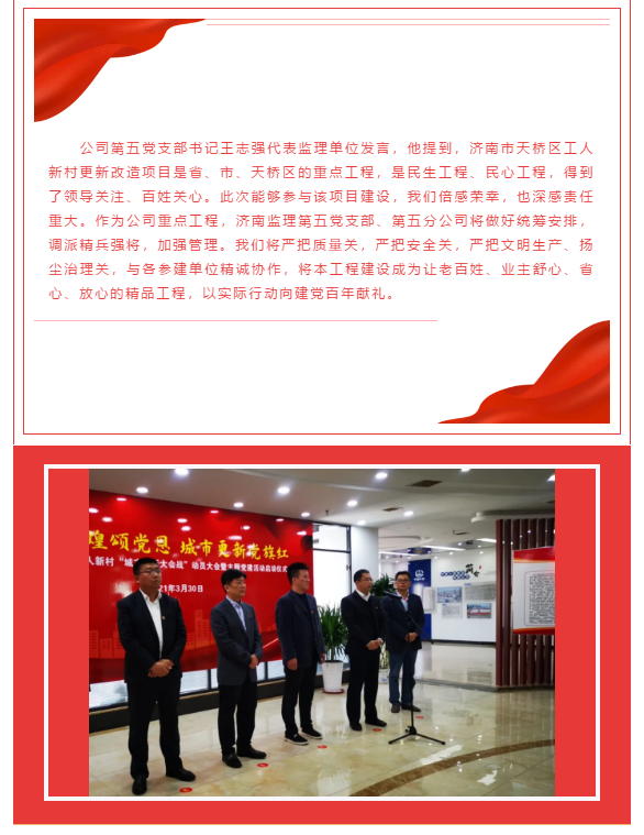 濟(jì)南監(jiān)理參加工人新村項(xiàng)目“城市更新大會(huì)戰(zhàn)”動(dòng)員大會(huì)暨主題黨建活動(dòng)啟動(dòng)儀式