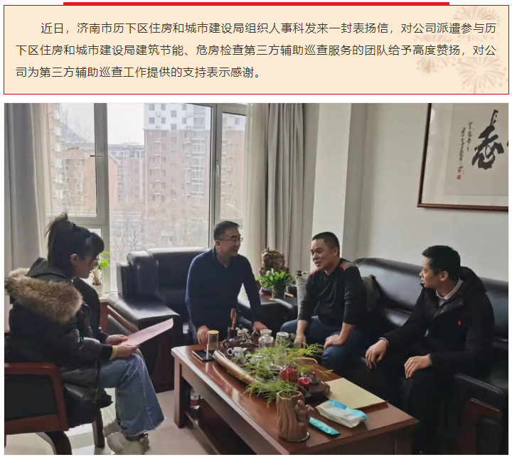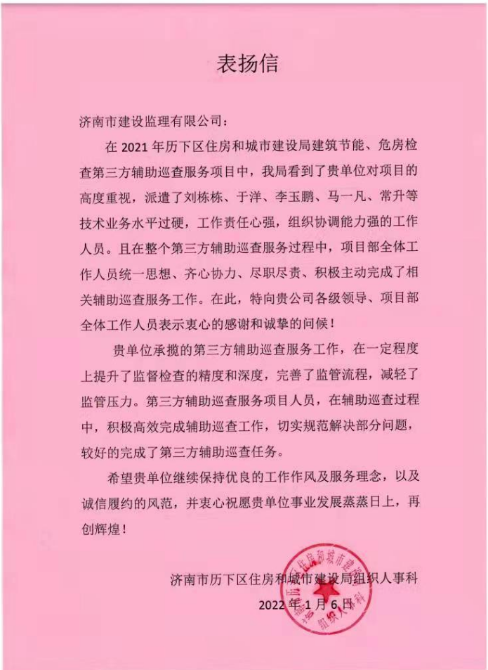 點贊!公司第三方輔助巡查服務團隊獲歷下區(qū)住房和城市建設局組織人事科來信表揚